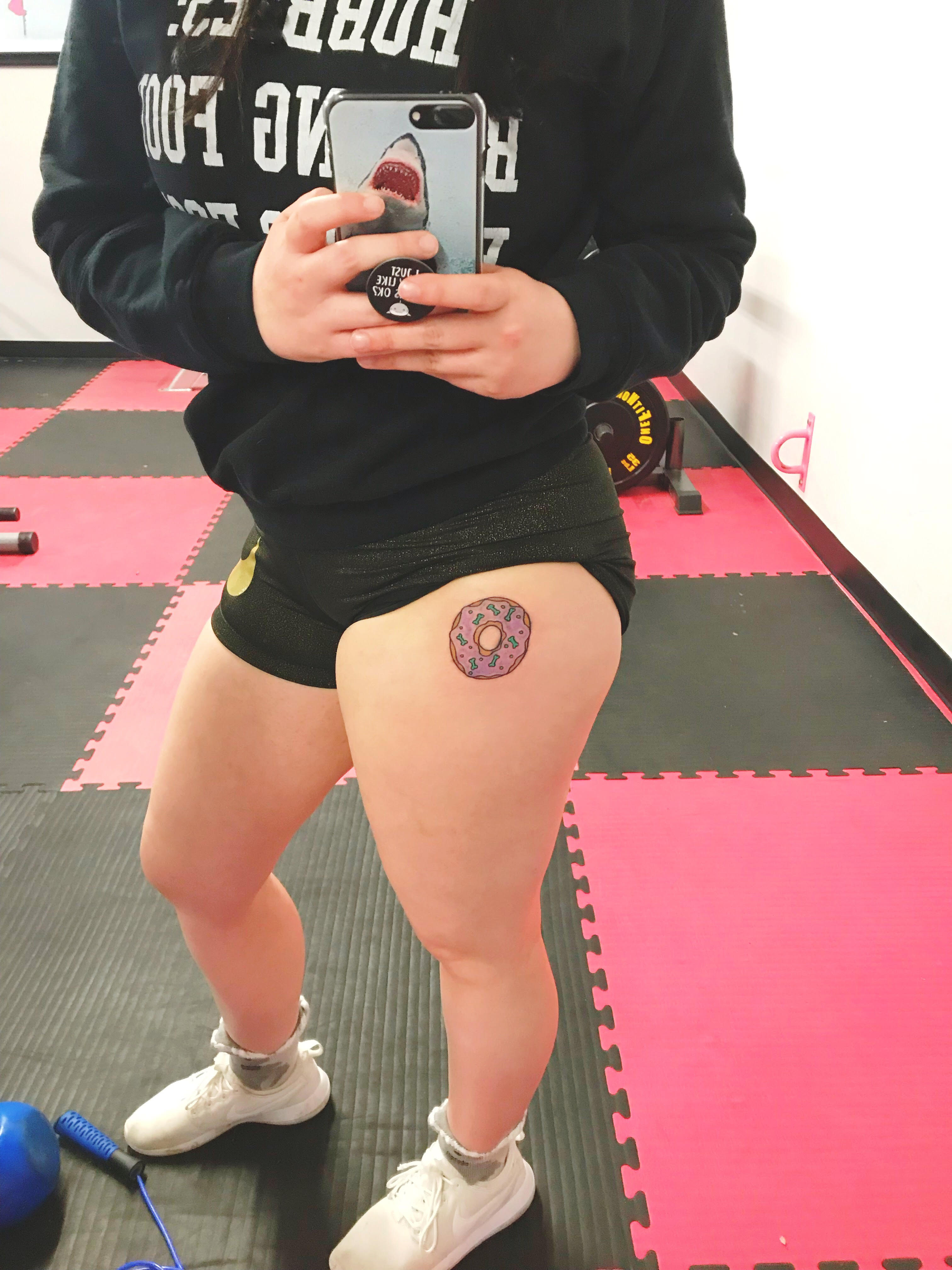 Andddddd I added tattoo #11. It was for a good cause. The dogs and cats at Stray Rescue. Epic Ink was having a fundraiser where they drew up a sheet of tattoos that you could choose from and all proceeds (including their tips!) went to Stray Rescue. So I got a donut with dog bones, obviously.